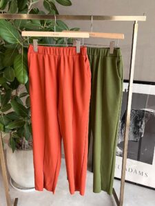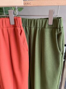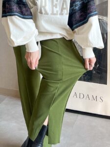 前スリットのカラーパンツになります